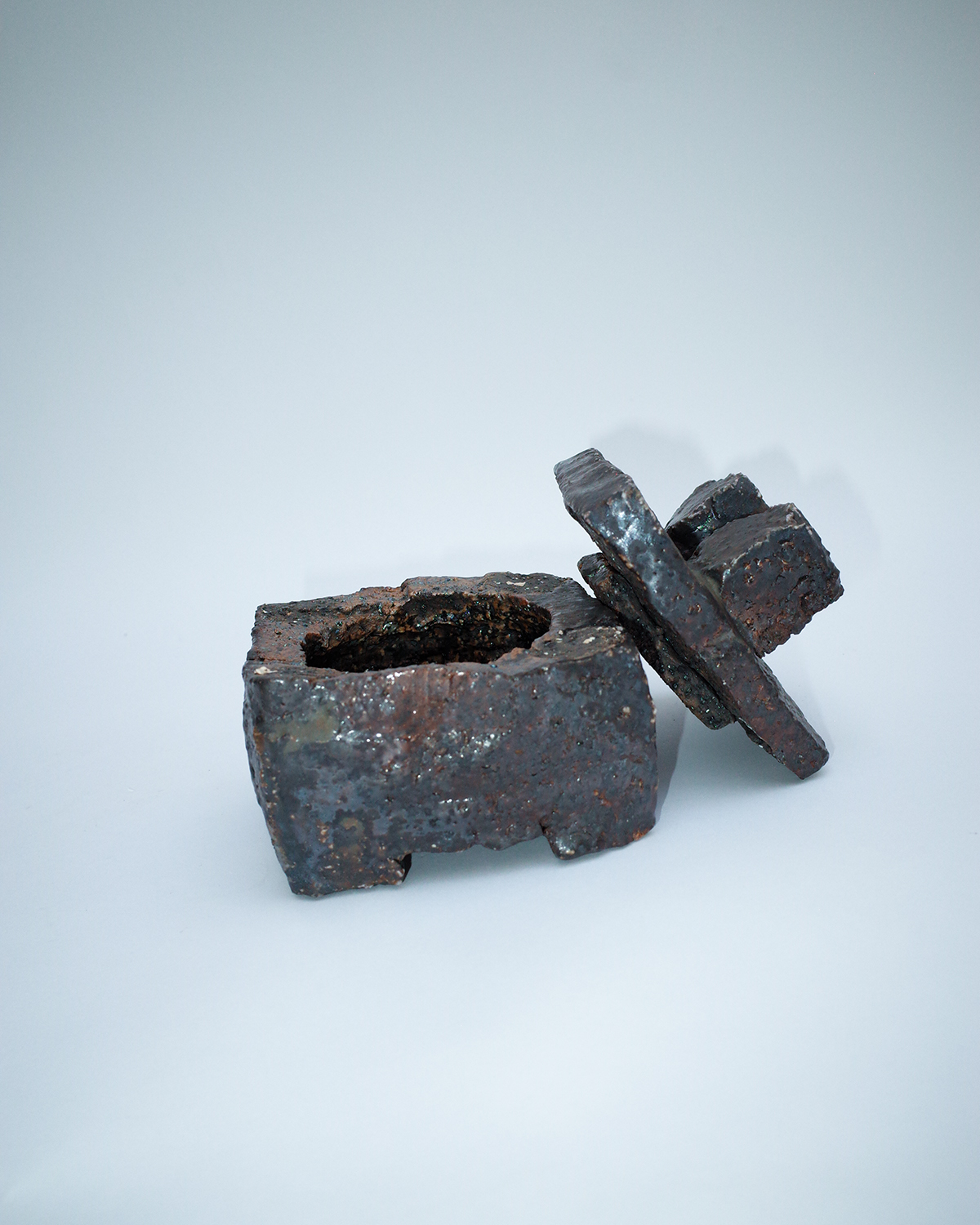 BROWN BOX, ASH GLAZE, IRON AND SCHISTE, 2025
